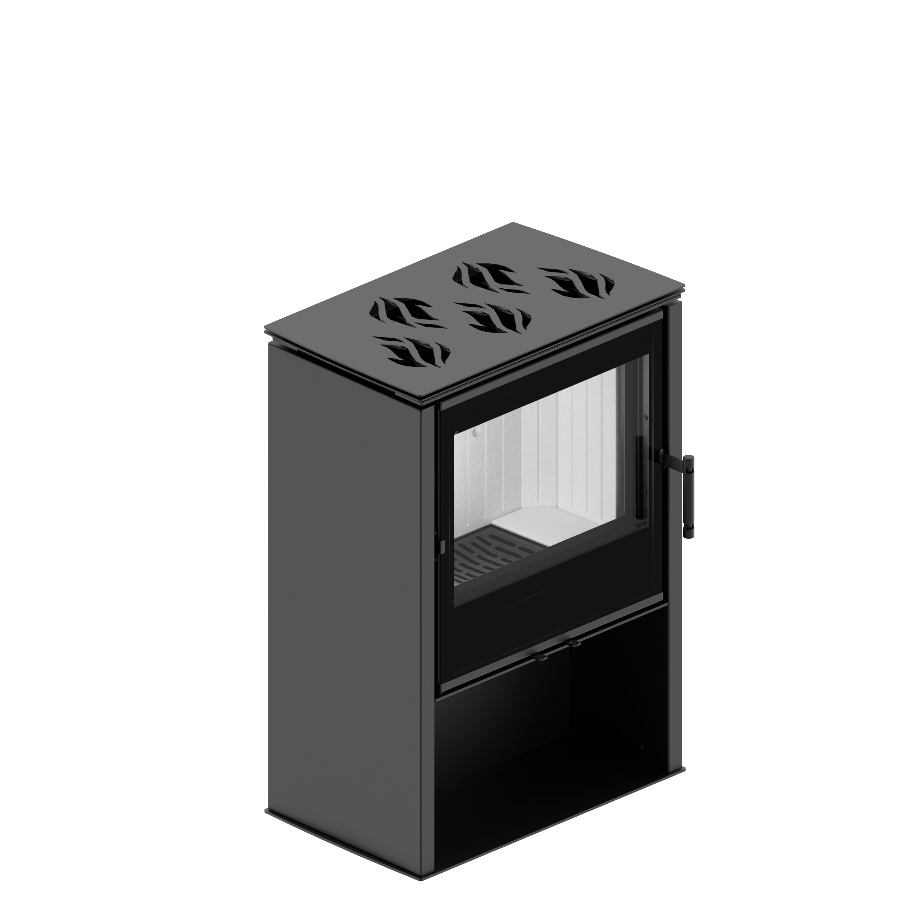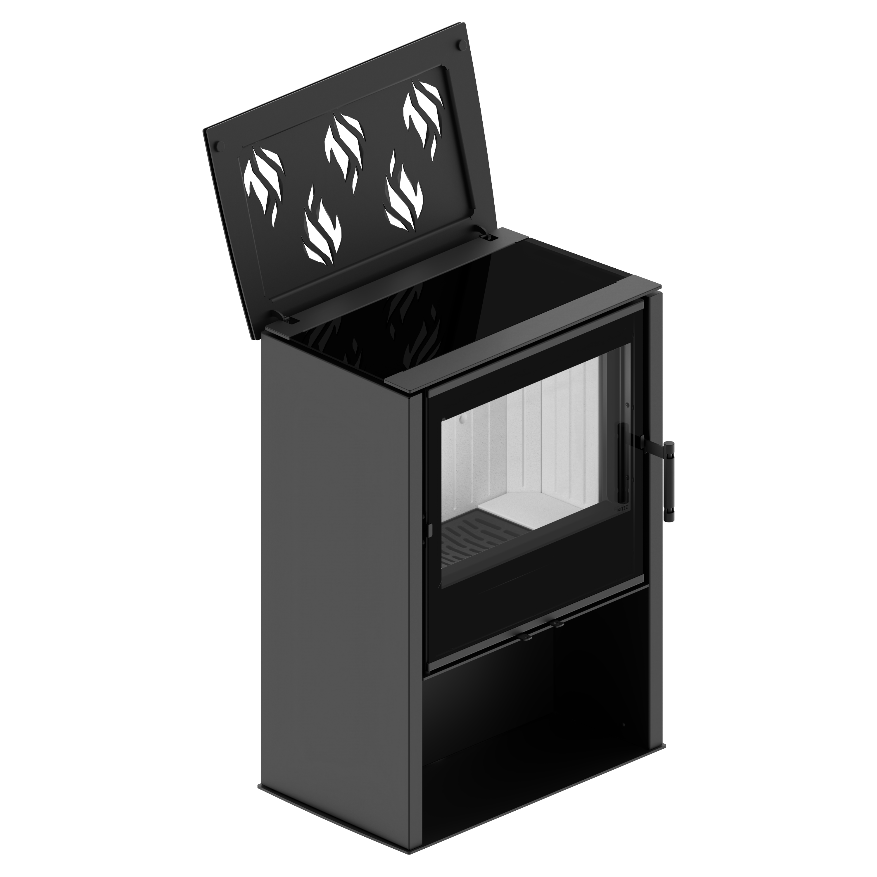Zastosowanie wytrzymałego, żeliwnego rusztu gwarantuje długą żywotność. Bezpośrednio pod rusztem znajduje się łatwo demontowalny popielnik charakteryzujący się ponadprzeciętną objętością. Konstrukcja kominka wolnostojącego LUPO M umożliwia montaż wylotu spalin z górnej ściany.