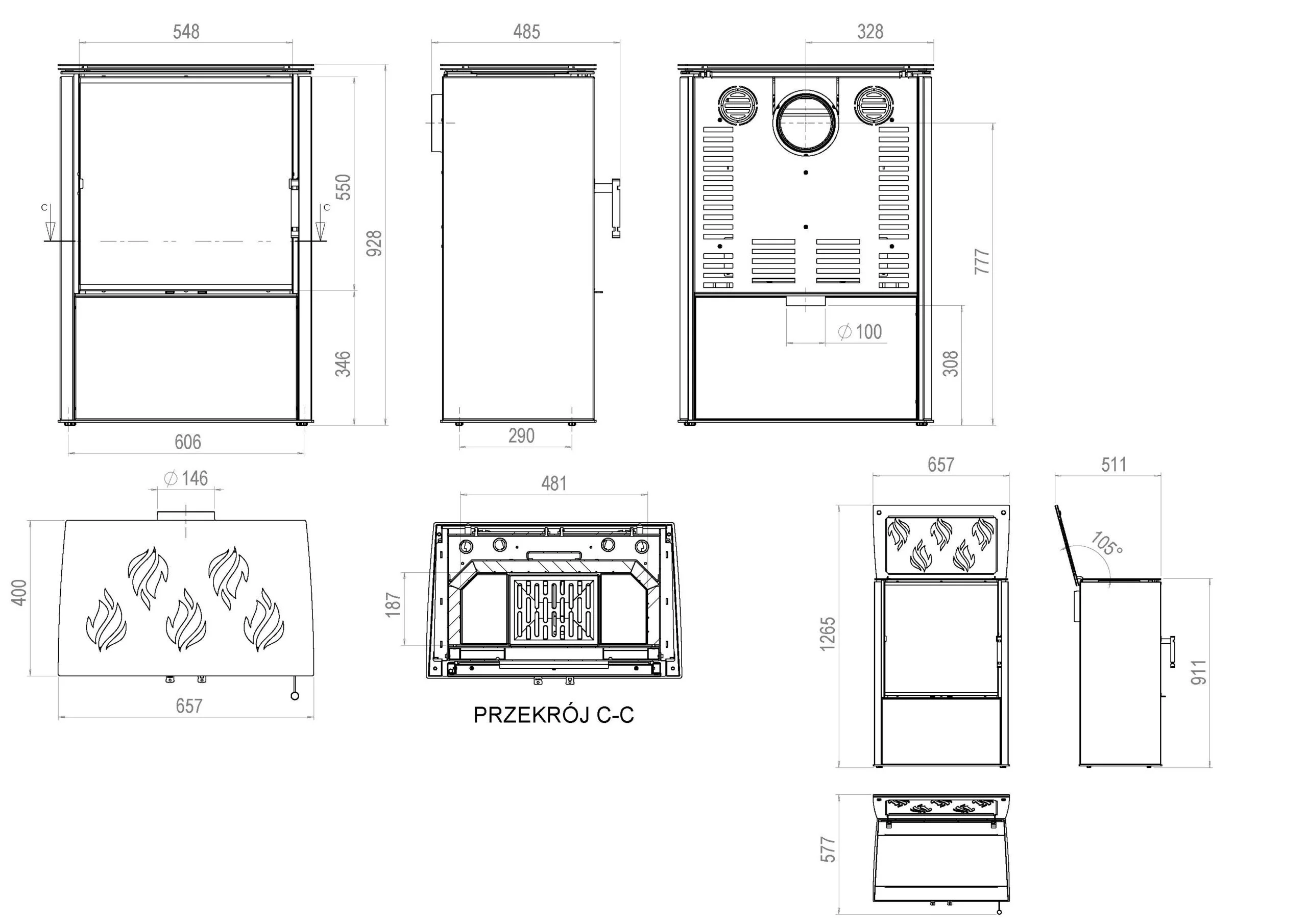 LUPO M Kominek wolnostojący z płytą grzewczą