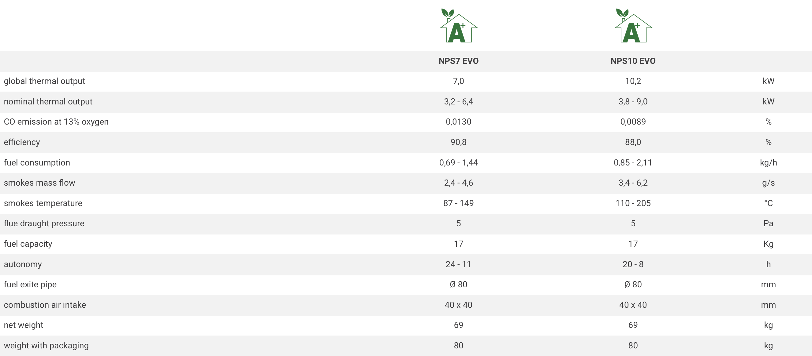 NPS 7/10 EVO to wyjątkowy korpus z segmentu urządzeń na pellet z nadmuchem, charakteryzujący się mocą 7/10 kW oraz tylnym wylotem spalin. Seria NPS wyróżnia się wykorzystaniem żeliwnego paleniska oraz deflektorów wymiennika ciepła, co nie tylko gwarantuje wydajność, lecz także trwałość. Innowacyjny system Smart Ventilation umożliwia płynne wyłączenie nadmuchu, zapewniając niezwykle cichą pracę w tym trybie. Ponadto, istnieje możliwość podłączenia powietrza z zewnątrz, co pozytywnie wpływa na efektywność działania. Dodatkowo, opcjonalnie można zainstalować moduł WIFI, umożliwiający wygodną zdalną kontrolę i monitorowanie urządzenia za pomocą dedykowanej aplikacji.