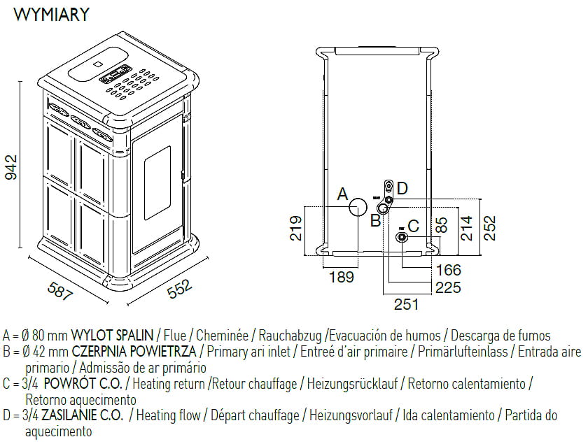 Minimalne odległości od ścian palnych: bok: 20 cm - tył: 20 cm - przód: 100 cm