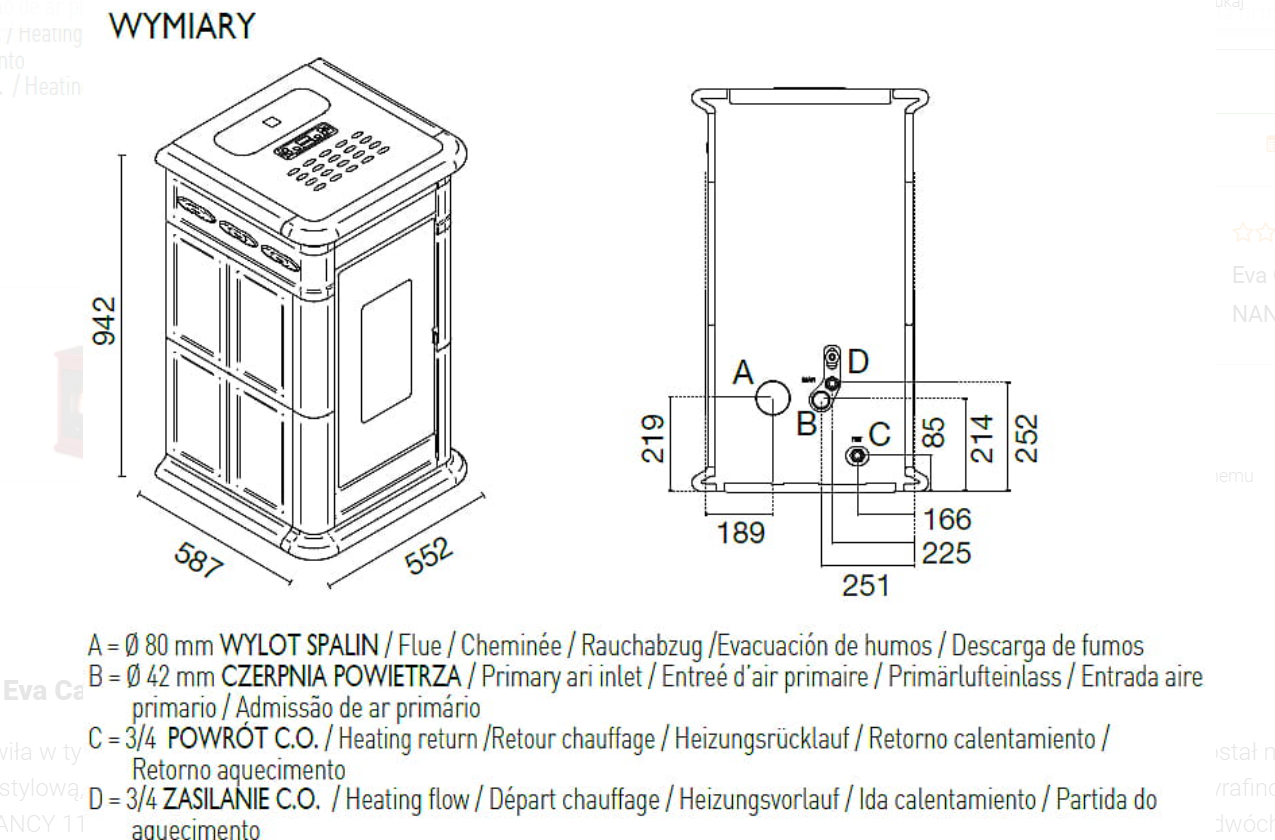 Piecyk na pellet z płaszczem wodnym Eva Calor Nancy 15